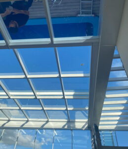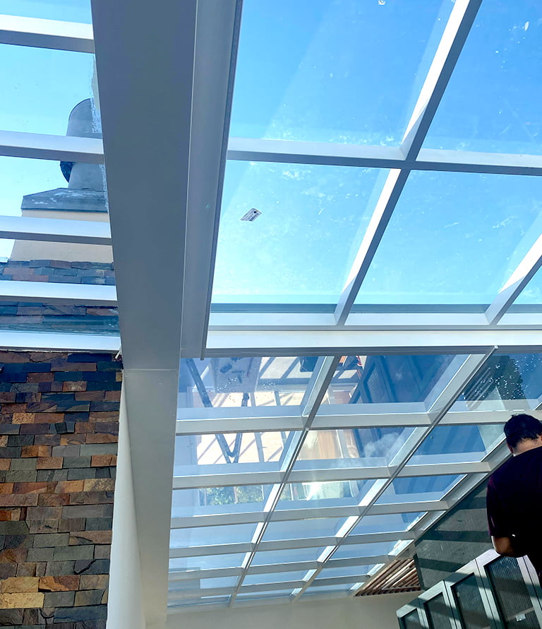 A película funciona como uma barreira que age contra a entrada de calor pela cobertura. Junto à película, o vidro age como um protetor térmico que mantém a temperatura estável no ambiente.